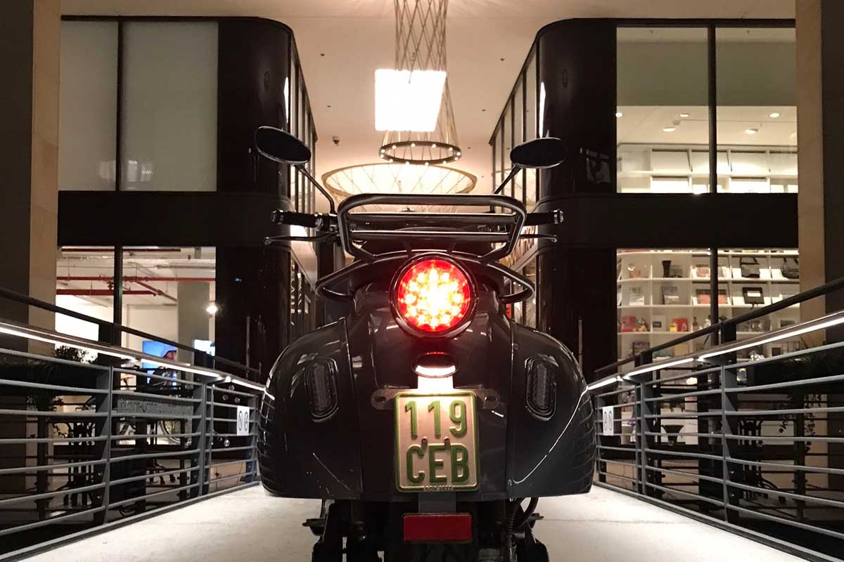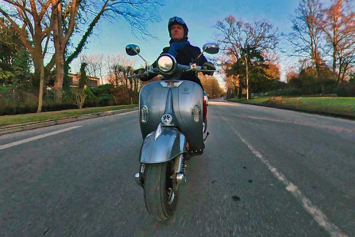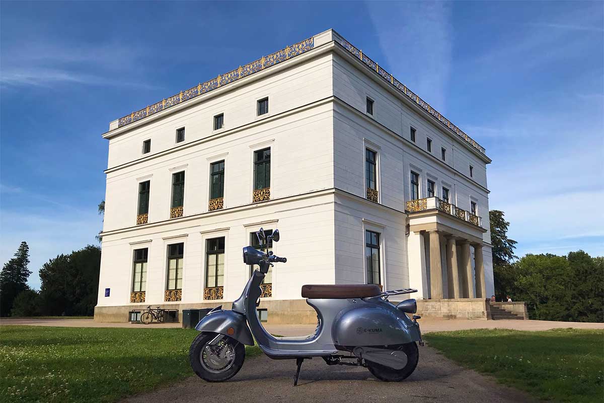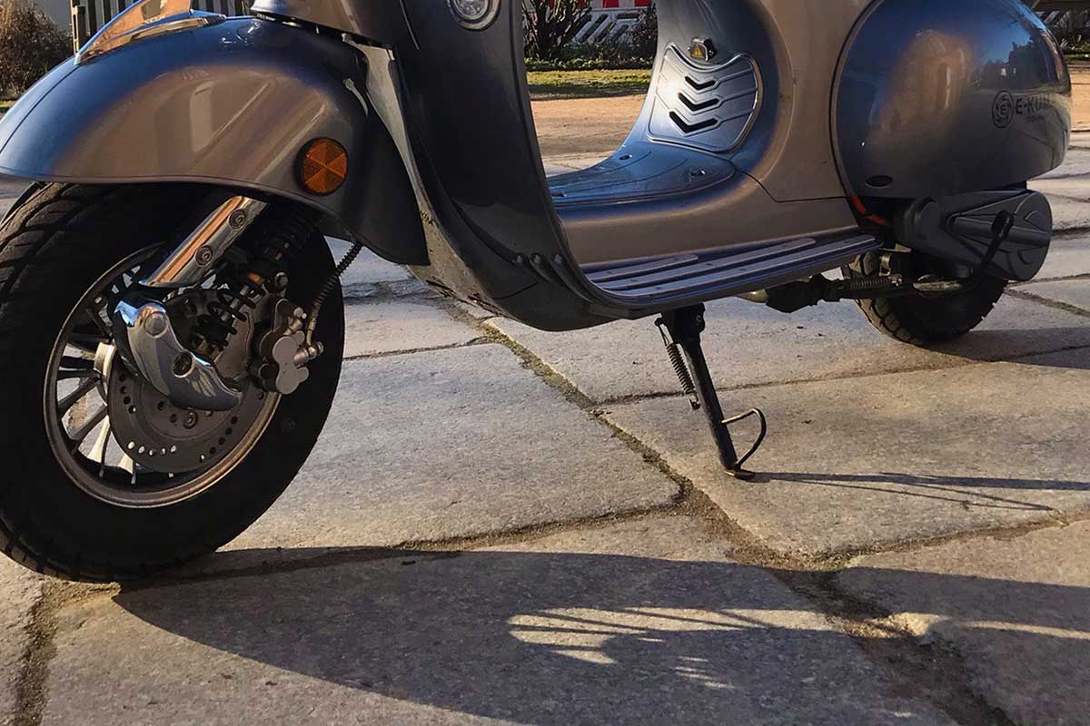 Der e-kuma SKY 2000W sieht aus wie eine klassische Vespa aus den 50er Jahren. Er ist aus allen Blickwinkeln schön und macht immer eine gute Figur. Mehr dazu weiter unten.