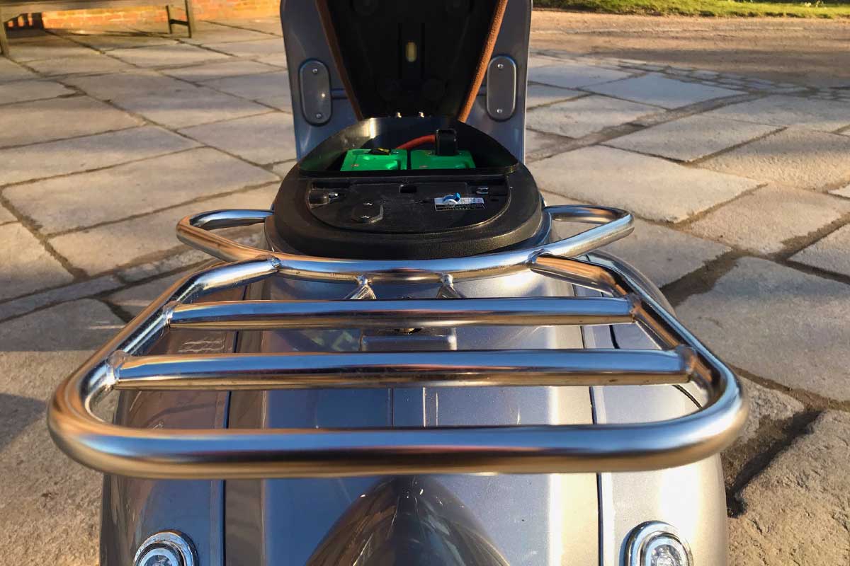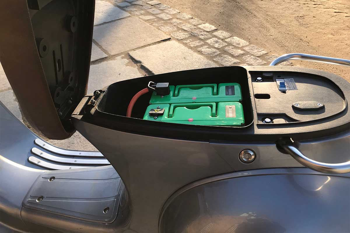 Aber wir empfehlen auf jedenFall gleich zu einer zweiten Batterie zu greifen. Damit hat der Roller auch im Stop-and-go-Verkehr in der Stadt eine realistische Reichweite von wenigstens 60 Km (weibliche Fahrerinnen 75 Km). Das ist nach unserer Erfahrung ein guter praktischer Wert für Elektroroller und wie man sie normalerweise nutzt.