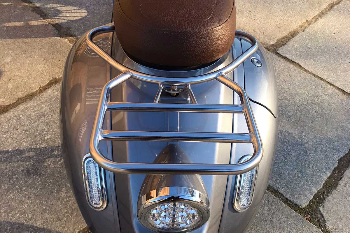 Am verchromten Gepäckträger hat sich kein Rost gebildet.