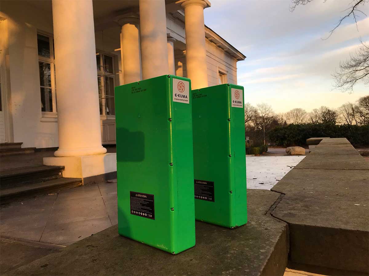 - Bei Modellen mit entnehmbaren Batterien (wie dem e-kuma SKY 2000W) kannst Du die Batterien bequem mit in die eigene Wohnung nehmen und dort an der eigenen Steckdosen (hoffentlich mit Ökostrom) aufladen.