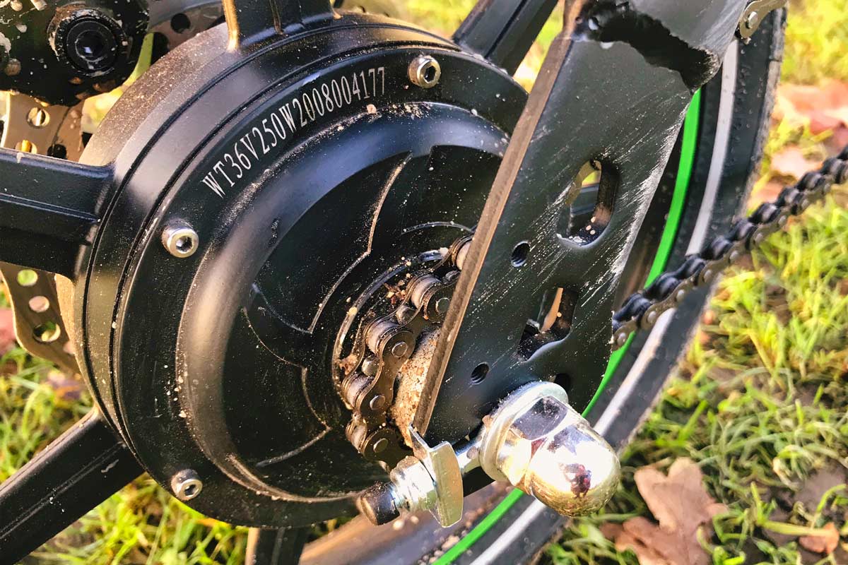 Radnabenmotoren sitzen typischerweise im Hinterrad und geben ihre Kraft direkt ohne über die Kette (oder einen Riemenantrieb) zu gehen an das Rad.