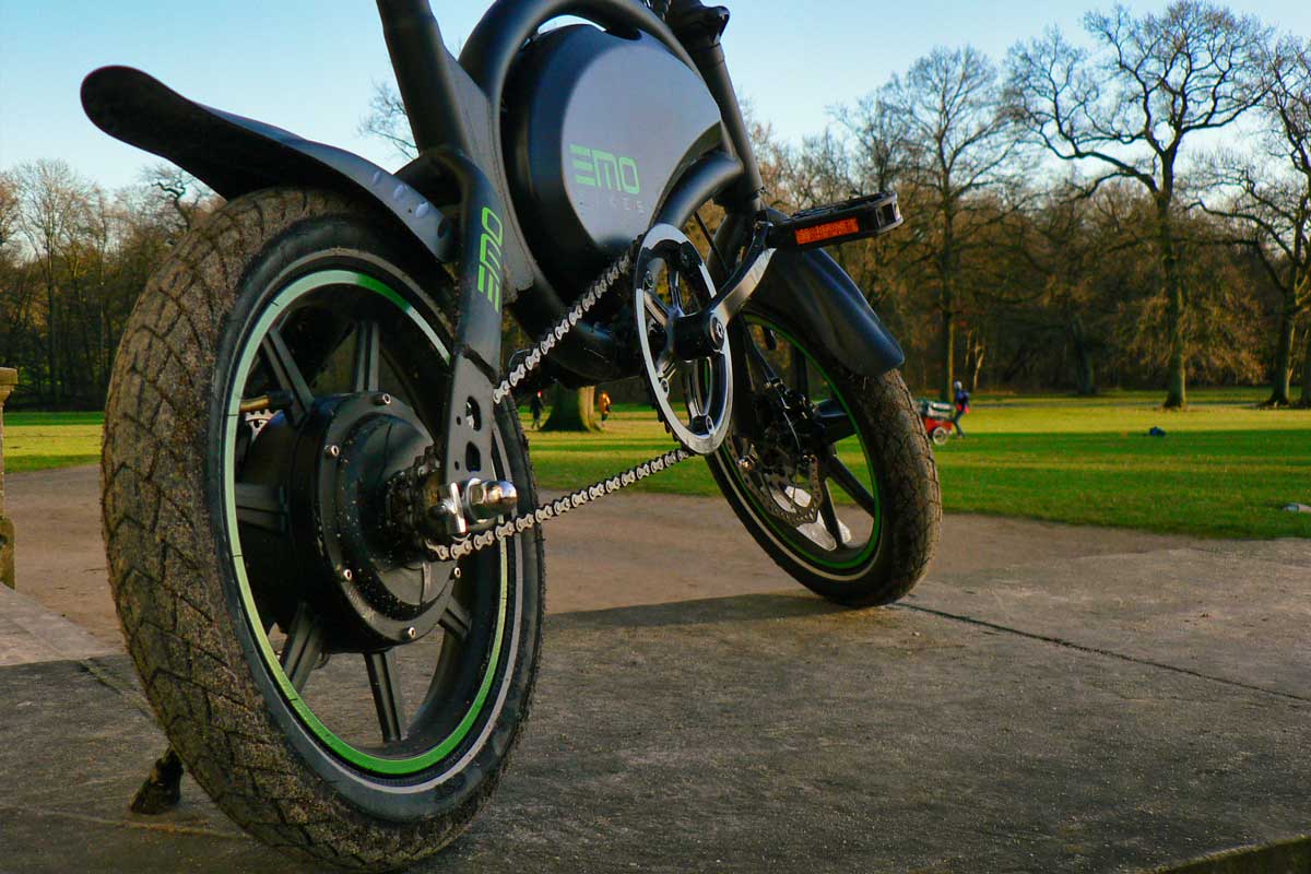 Das EMO 1S fährt vorn und hinten auf 14 Zoll-Rädern.