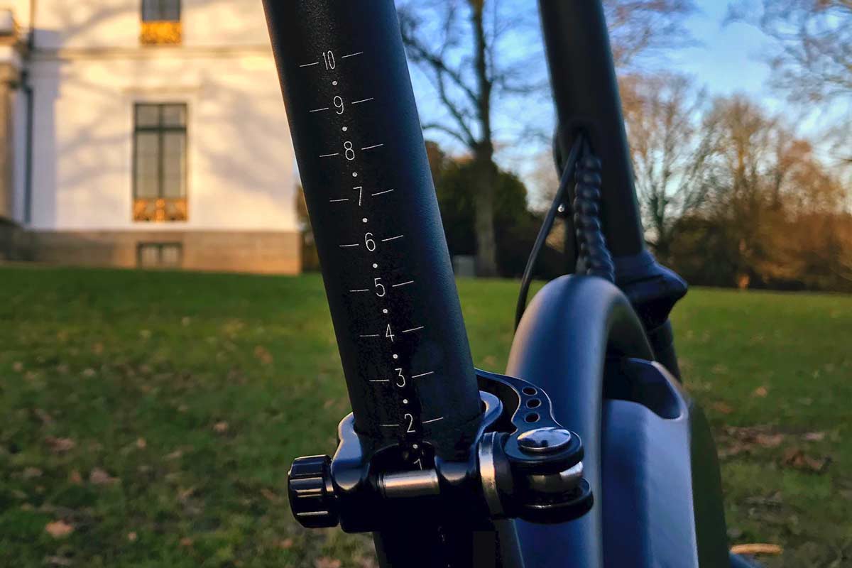 Mit eingeklappter Lenkstange und eingefahrener Sattelstütze geht es als Handgepäck durch.