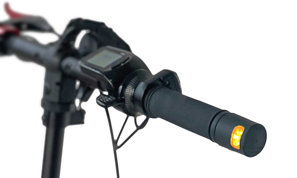 Der Moovi Pro S Comfort hat an den Lenkerenden stabile geschützte und vor allem helle Blinker der Marke Satellite, die sich bereits bei anderen e-Scooter-Modellen sehr bewährt haben.